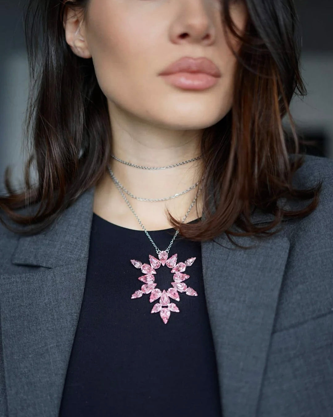 • Swarovski crystals and stainless steel chain necklace.