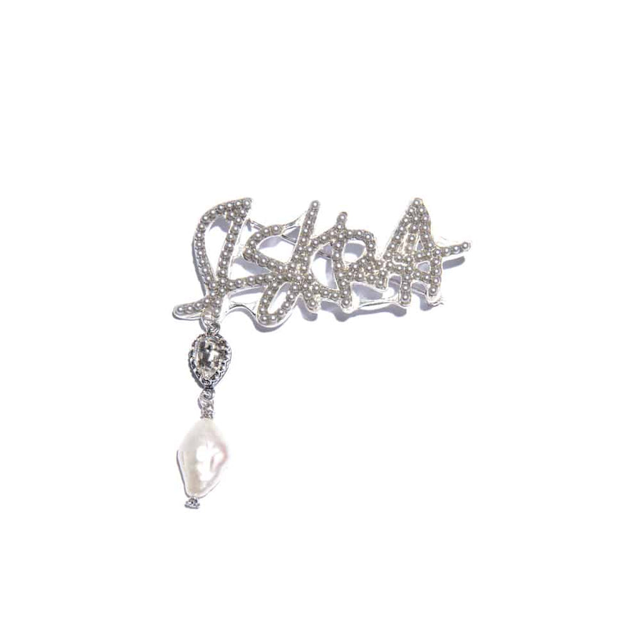 Sterling silver brooch. A fresh touch to an elegant coat or blazer. Modern design in combination with classic pearl elements.